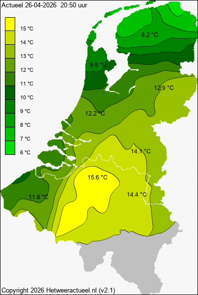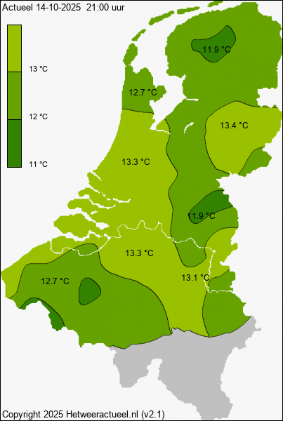 The South-East of Belgium remains light gray, as no weather stations are nearby. Chapter: hwa weather maps