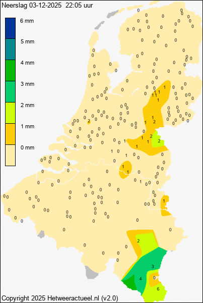 Het Zuid-Oosten van Belgie blijft lichtgrijs, omdat hier geen weerstations in de buurt zijn.