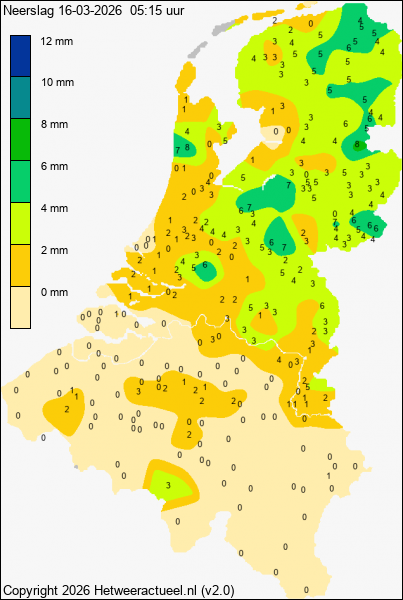 Op het tweede kaartje staat de neerslag die vandaag is gevallen tot en met het het tijdstip zoals vermeld in het kaartje.